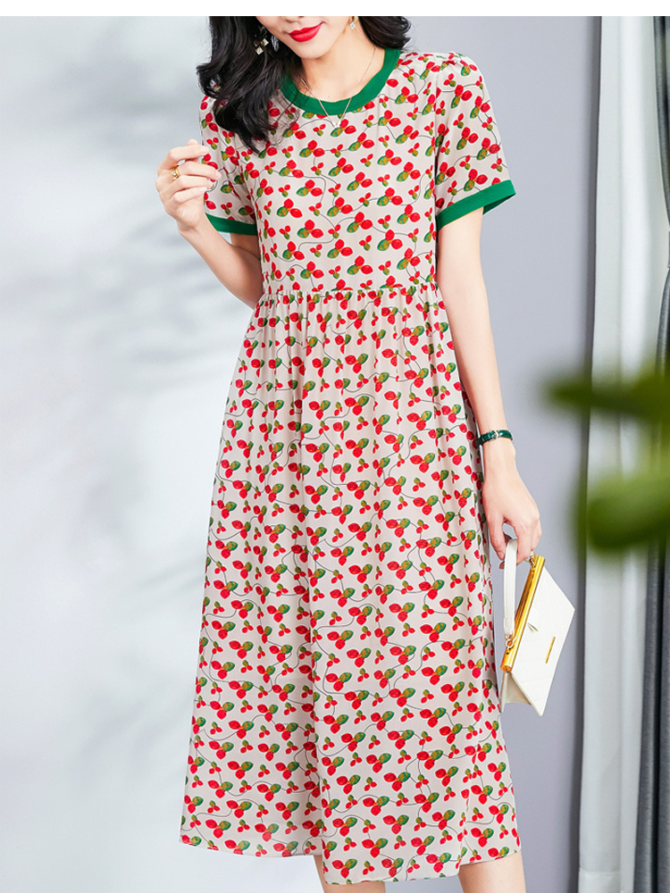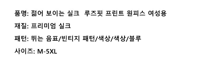 젊어 보이는 실크 루즈핏 프린트 원피스 여성용