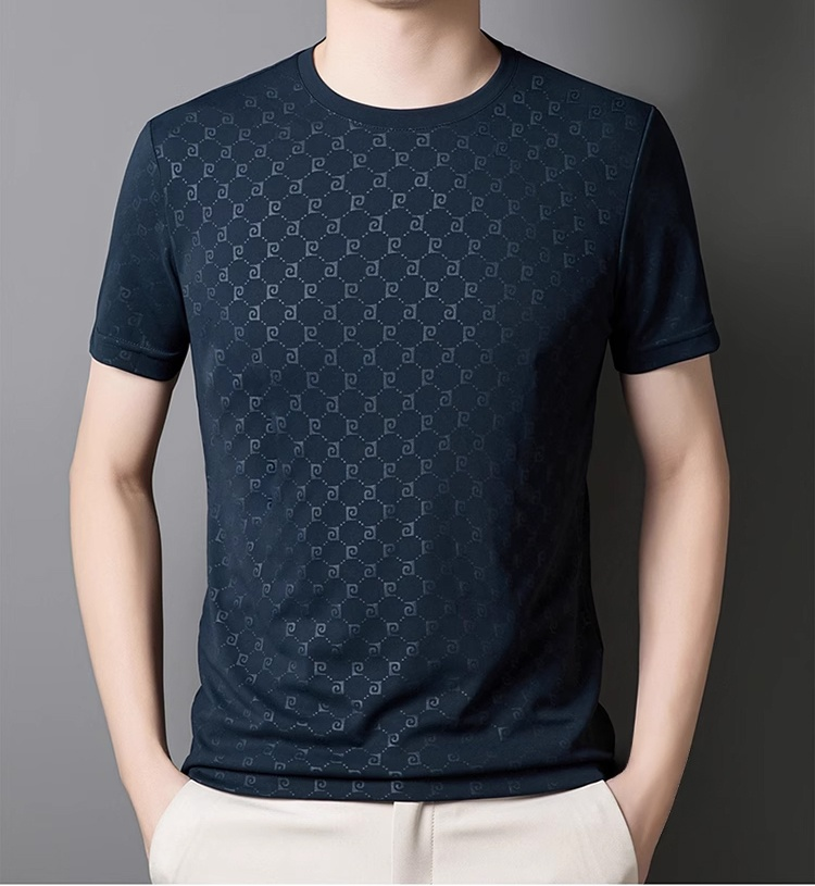 여름 남성 반소매 자카드 라운드넥 티셔츠