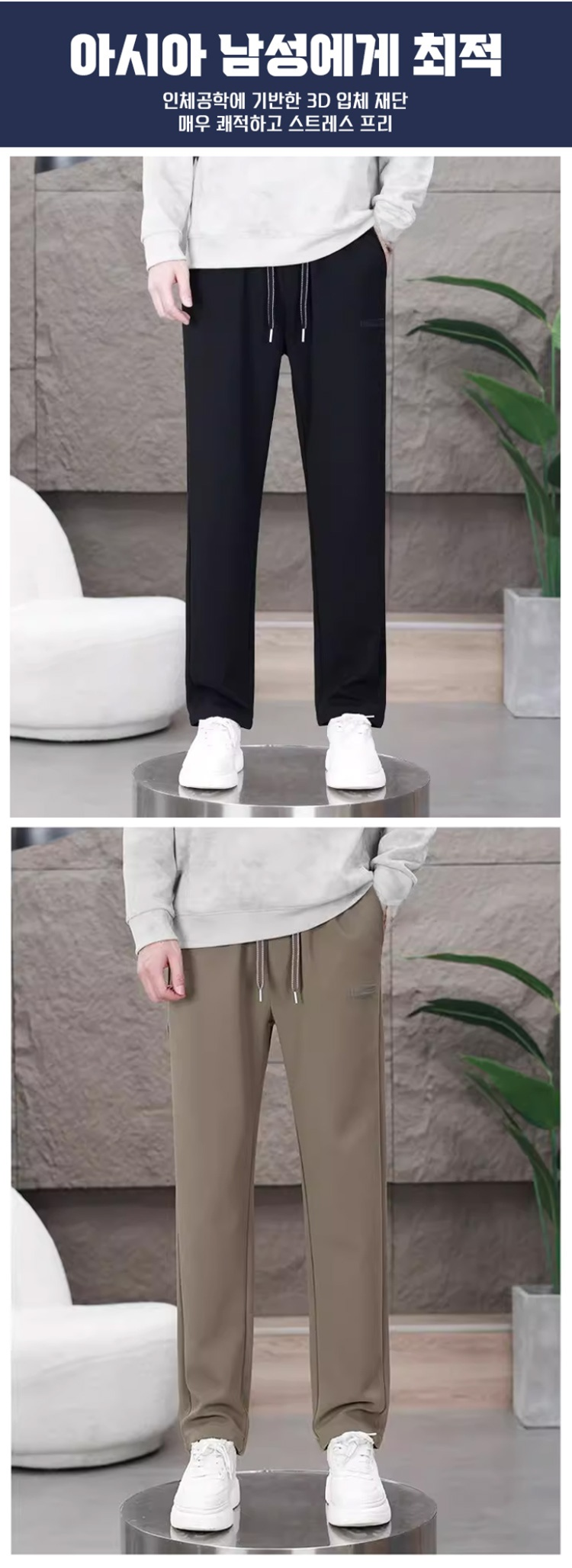 심플한 솔리드 스트레이트 캐주얼 남성 팬츠 전체 이미지